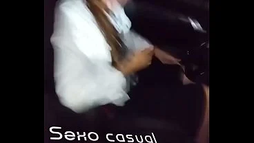 Punheta dentro do carro da motorista de app deixou gozar na boca dela!